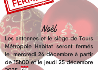 Voir toutes les actualitésLes antennes et le siège de Tours Métropole Habitat seront fermés le mercredi 24 décembre à partir de 15h00 et le jeudi 25 décembre...