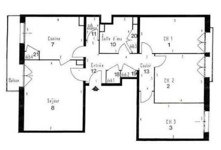 Cet appartement est composé d’une cuisine, un séjour avec balcon, une salle d’eau et 3 chambres.